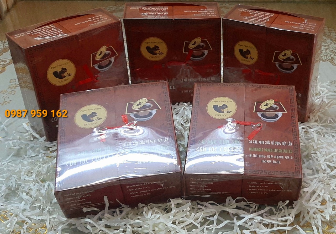 Cà phê phin giấy – Hộp phin đôi hương Hazelnut – Café Con Sóc